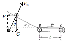 如图所示,质量为m=1kg的滑块,在水平力作用下静止在倾角为θ=30°在光滑斜面上,斜面的末端B与水平传送带相接(物块经过此位置滑上皮带时无能量损失),传送带的运行速度为v0=3m/s,长为L=1.4m;今将水平力撤去,当滑块滑到传送带右端C时,恰好与传送带速度相同。滑块与传送带间的动摩擦因数为μ=0.25。g=10m/s2。求: