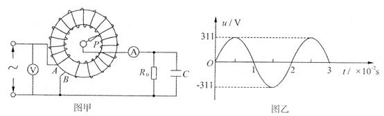 如图甲所示为一自耦变压器,变压器的原线圈AB端输入电压如图乙所示,副线圈电路中定值电阻R0=11