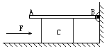 一均匀木板AB,B端固定在墙壁的转轴上,木板可在竖直平面内转动,木板下垫有长方体木块C,恰好使木板水平放置,如图所示,现用一水平力F将C由A向B缓慢推动,在推动过程中,推力F将