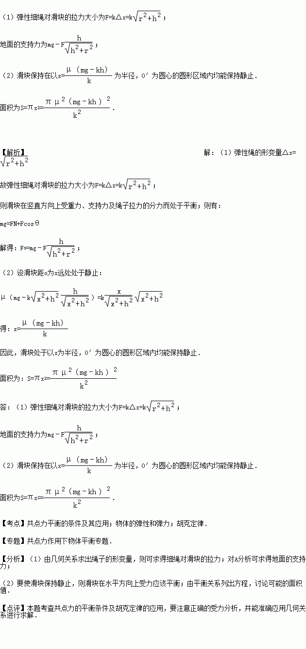 (1)当滑块与O′点距离为r时,弹性细绳对滑块A的拉力为多大?水平地面对滑块A的支持力为多大?