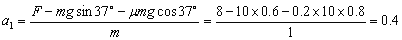 联立方程8 = 10sinθ1+ 2cosθ1 解得θ1≈40.4°