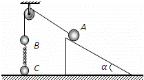 如图所示,A、B两小球由绕过轻质定滑轮的细线相连,A放在固定的光滑斜面上,B、C两小球在竖直方向上通过劲度系数为k的轻质弹簧相连,C球放在水平地面上.现用手控制住A,并使细线刚刚拉直但无拉力作用,并保证滑轮左侧细线竖直、右侧细线与斜面平行.已知A的质量为4m,B、C的质量均为m,重力加速度为g,细线与滑轮之间的摩擦不计,开始时整个系统处于静止状态.释放A后,A沿斜面下滑至速度最大时C恰好离开地面.求A获得最大速度.