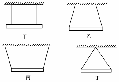 如图所示,用两根绳子将日光灯悬挂起来,有四种悬挂方法,在乙、丙两图中,乙中左侧绳与丙中右侧绳跟水平灯管的夹角均为θ,乙中右侧绳与丙中左侧绳跟水平灯管夹角也为θ,那么绳受拉力大小的情况是( )
