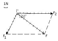 两线段所夹的对角线表示两个力的合力F大小与方向如图所示;![]()