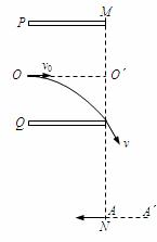 ,两板带等量异种电荷,上极板带负电。在MN右侧存在垂直于纸面的矩形匀强磁场(图中未画出),其左边界和下边界分别与MN、AA′重合(边界上有磁场)。现有一带电粒子以初速度v0沿两板中央OO′射入,并恰好从下极板边缘射出,又经过在矩形有界磁场中的偏转,最终垂直于MN从A点向左水平射出。已知A点与下极板右端的距离为d。不计带电粒子重力。求: