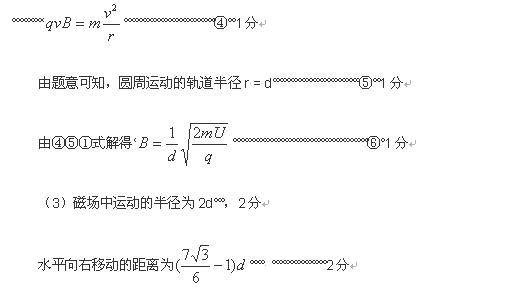 (3)现将离子换成质量为4m ,电荷量仍为q的另 一种正离子,其它条件不变。磁分析器空间足够大,离子不会从圆弧边界射出,收集器的位置可以沿水平方向左右移动,要使此时射出磁分析器的离子仍能进入收集器,求收集器水平移动的距离。