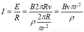 用一段截面半径为r、电阻率为ρ、密度为d的均匀导体材料做成一个半径为R (r<<R)的圆环。圆环落入磁感应强度为B的径向磁场中。如图所示,当圆环在加速下落时某一时刻的速度为v,则( )