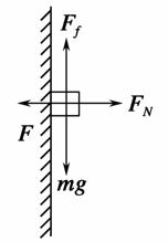 如图所示,水平恒力F=20 N,把质量m=0.6 kg的木块压在竖直墙上,木块离地面的高度H=6 m.木块从静止开始向下做匀加速运动,经过2 s到达地面.