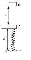 如图所示,一轻质弹簧竖直固定在地面上,自然长度l0=0.50m,上面连接一个质量m1=1.0kg的物体A,平衡时物体距地面h1=0.40m,此时弹簧的弹性势能EP=0.50J。在距物体A正上方高为h=0.45m处有一个质量m2=1.0kg的物体B自由下落后,与弹簧上面的物体A碰撞并立即以相同的速度运动,已知两物体不粘连,且可视为质点。g=10m/s2。求: