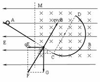 ,接着沿直线BC(此处无轨道)运动到达C处进入半圆轨道,进入时无动能损失,且刚好到达D点,从D点飞出时磁场消失,不计空气阻力,g=10m/s2,cos37°=0.8,求: