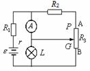 如图所示,灯泡L标有“3V 3W”字样,其电阻不变,R1=5Ω,R2阻值未知,,R3是最大电阻为6Ω的滑动变阻器,P为滑动片,电流表内阻不计。当P滑到A端时,灯泡L正常发光;当P滑到B端时,电源的输出功率为20W。则( )