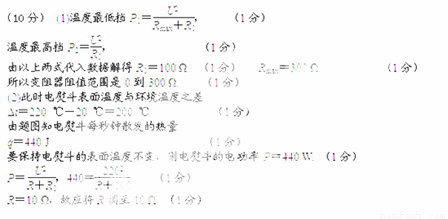 (1)该电熨斗温度最低时的耗电功率为121 W,温度最高时的耗电功率为484 W,求R0的阻值及R的阻值变化范围.