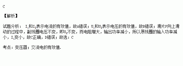 D.滑片P向下滑动过程中,U2变小、I2变大