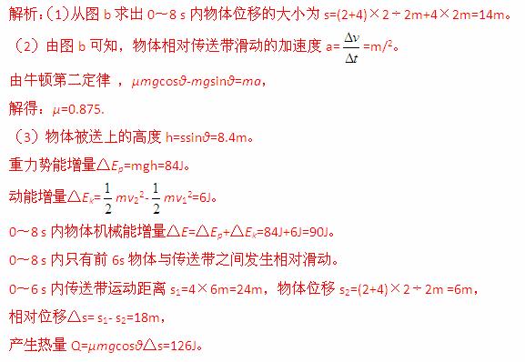(3)0~8 s内物体机械能增量及与传送带摩擦产生的热量Q。