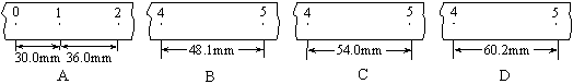 ijͬѧÔڲⶨÔȱäËÙÖ±ÏßÔ˶¯µÄ¼ÓËÙ¶Èʱ£¬µÃµ½Á˼¸Ìõ½ÏΪÀíÏëµÄÖ½´ø¡£ËûÔÚÿÌõÖ½´øÉϰ´Ã¿5¸ö´òµã¼ä¸ôȡһ¸ö¼ÆÊýµã×÷Ϊ¼ÆÊ±ÖÜÆÚT0£¬²¢ÒÀ´òµãÏȺó˳Ðò±àºÅΪ0¡¢1¡¢2¡¢3¡¢4¡¢5¡¡¡£Ò»²»ÁôÉñ£¬¼¸ÌõÖ½´ø¶¼±»Ëº¶ÏÁË£¬ÓÚÊÇ´ÓÕâЩ¶ÏµôµÄÖ½´øÖÐÈ¡ÁËÈçͼËùʾµÄA¡¢B¡¢C¡¢DËĶΡ£Çë¸ù¾Ý¸ø³öµÄËĶÎÖ½´ø»Ø´ð£º