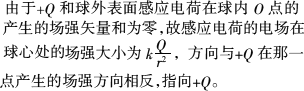 如图所示,A为空心金属球,半径为R,球外正点电荷的电荷量为Q,到球心O的距离为r,下面哪个选项是感应电荷的电场在球心处的场强大小和方向