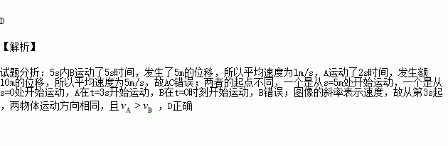 D.从第3s起,两物体运动方向相同,且vA>vB
