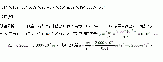 (2)从图中读出A、B两点间距x=______cm;C点对应的速度是________m/s,加速度是_______m/s2(计算结果保留三位有效数字).