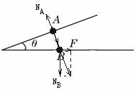 ÈçͼËùʾ£¬¹â»¬µÄ¼Ð½ÇΪ¦È£½30¡ãµÄÈý½Ç¸Ëˮƽ·ÅÖã¬Á½Ð¡ÇòA¡¢B·Ö±ð´©ÔÚÁ½¸ö¸ËÉÏ£¬Á½ÇòÖ®¼äÓÐÒ»¸ùÇáÉþÁ¬½ÓÁ½Çò£¬ÏÖÔÚÓÃÁ¦½«Ð¡ÇòB»ºÂýÀ¶¯£¬Ö±µ½ÇáÉþ±»Àֱʱ£¬²â³öÀÁ¦F£½10 N£¬Ôò´Ëʱ¹ØÓÚÁ½¸öСÇòÊܵ½µÄÁ¦µÄ˵·¨ÕýÈ·µÄÊÇ(Á½Ð¡ÇòÖØÁ¦¾ù²»¼Æ)