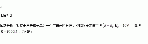 C.串联一个9.5kΩ的电阻 D.并联一个9.5kΩ的电阻