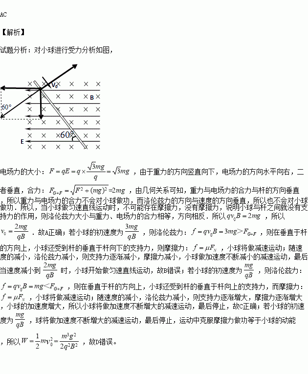 如图所示,空间中存在一水平方向匀强电场和一水平方向匀强磁场,且电场方向和磁场方向相互垂直,在电磁场正交的空间中有一足够长的固定粗糙绝缘杆,与电场正方向成
