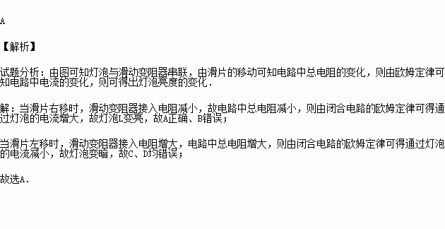 如图电路,当滑动变阻器的滑片P左右滑动时,有关小灯泡L亮度的变化,下列判断正确的是( )