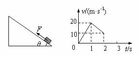 质量m=1kg的物体置于倾角θ=37°的固定粗糙斜面上,t=0时对物体施以平行于斜面向上的拉力F,t=1s时撤去拉力,物体运动的部分v-t图如图所示。已知斜面足够长,g取10m/s2,则下列说法中正确的是