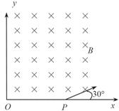 如图所示,在x>0、y>0的空间中有恒定的匀强磁场,磁感应强度的方向垂直于xOy 平面向里,大小为B.现有一质量为m、电量为q的带正电粒子,从在x轴上的某点P沿着与x轴成30°角的方向射入磁场。不计重力影响,则下列说法中正确的是( )