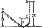 有一个斜直轨道AB与同样材料的1/4圆周轨道BC圆滑连接,数据如图,D点在C点的正上方,距地高度为3R,现让一个小滑块从D点自由下落,沿轨道滑动到A点刚好速度减为零,则它再从A点沿轨道自由滑下所能上升到距离地面的最大高度应是(不计空气阻力)