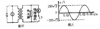 Èçͼ¼×Ëùʾ£¬ÀíÏë±äѹÆ÷Ô¡¢¸±ÏßȦµÄÔÑÊý±ÈΪ5£ºl£¬ÔÏßȦ½Ó½»Á÷µçÔ´ºÍ½»Á÷µçѹ±í£¬¸±ÏßȦÓëÈÈË®Æ÷¡¢³éÓÍÑÌ»úÁ¬½Ó¡£ÒÑÖª¸±ÏßȦÉϵĵçѹ°´Í¼ÒÒËùʾ¹æÂɱ仯£¬ÏֱպϿª¹Øs½Óͨ³éÓÍÑÌ»ú£¬ÏÂÁÐ˵·¨ÕýÈ·µÄÊÇ£¨ £©