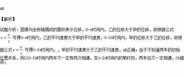 C.0-2t时间内两车一定有两次相遇时