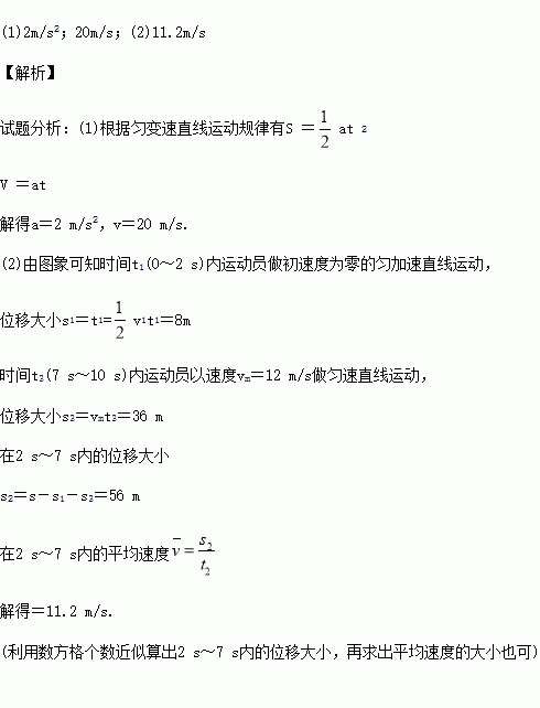 (2)ʵ¼ÊÉÏ£¬Ô˶¯Ô±ÆðÅÜʱ»á¾¡Á¦Ê¹¼ÓËÙ¶È´ïµ½×î´ó£¬µ«Ö»ÄÜά³ÖһС¶Îʱ¼ä£¬Êܵ½ÌåÄܵÄÏÞÖÆºÍ¿ÕÆø×èÁ¦µÈÒòËØµÄÓ°Ï죬¼ÓËٶȽ«Öð½¥¼õС£¬µ½´ïÖÕµã֮ǰËÙ¶ÈÒÑ´ïµ½×î´ó£®ÈçͼÖмǼµÄÊǸÃÔ˶¯Ô±ÔÚ±ÈÈüÖеÄv£tͼÏ󣬯äÖÐʱ¼ät1(0¡«2 s)ºÍʱ¼ät3(7 s¡«10 s)ÄÚ¶ÔÓ¦µÄͼÏß¾ù¿ÉÊÓΪֱÏߣ¬Ê±¼ät2(2 s¡«7s)ÄÚ¶ÔÓ¦µÄͼÏßΪÇúÏߣ¬ÊÔÇóÔ˶¯Ô±ÔÚʱ¼ät2(2 s¡«7 s)Ä򵀮½¾ùËٶȵĴóС£®