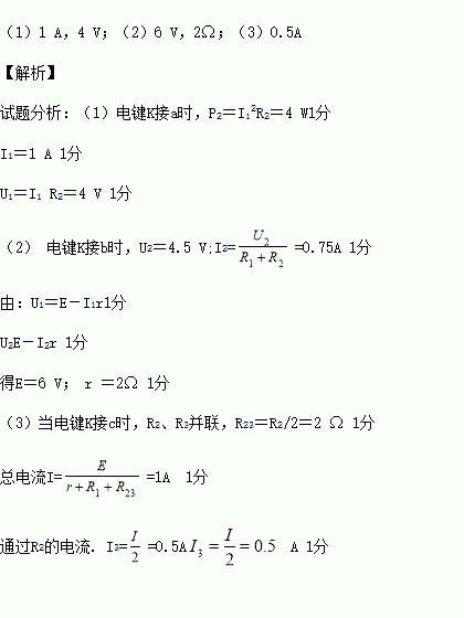 (1)电键K接a时,通过电源的电流和电源两端的电压;