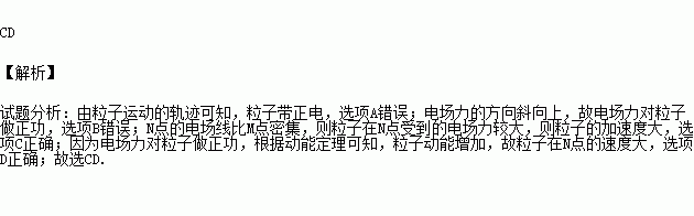 某电场的电场线的分布如图所示。一个带电粒子由M点沿图中虚线所示的途径运动 通过N点。则下列判断正确的是( )