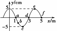 如图所示是一列简谐横波在某时刻的波动图象,从该时刻开始,此波中d质点第一次到达波谷的时间比e质点第一次到达波谷的时间早0.10 s.若b质点的平衡位置为x=