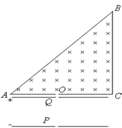如图所示,PQ是两块平行金属板,上极板接电源正极,两极板之间的电压为U=1.2×104V,一群带负电粒子不停的通过P极板的小孔以速度v0=2.0×104m/s垂直金属板飞入,通过Q极板上的小孔后,垂直AC边的中点O进入边界为等腰直角三角形的匀强磁场中,磁感应强度为B=1.0T,边界AC的长度为a=1.6m,粒子比荷