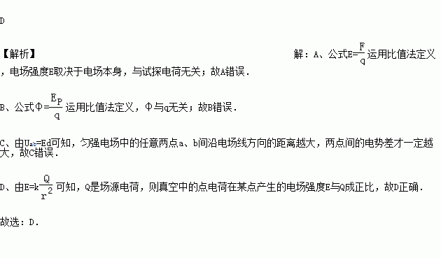 可知,真空中的点电荷在某点产生的电场强度E与Q成正比