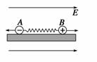 如图所示,质量分别为m1和m2的两个小球A、B,带有等量异种电荷,通过绝缘轻弹簧相连接,置于绝缘光滑的水平面上,突然加一水平向右的匀强电场后,两小球A、B将由静止开始运动,在以后的运动过程中,对两小球A、B和弹簧组成的系统,下列说法中正确的是(设整个过程中不考虑电荷间库仑力的作用且弹簧不超过弹性限度) ( )