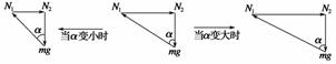 一个光滑的圆球搁在光滑的斜面和竖直的挡板之间,如图7所示.斜面和挡板对圆球的弹力随斜面倾角α变化而变化,故 ( ).