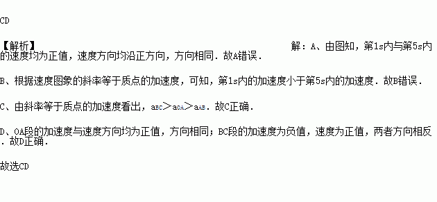 D.OA段的加速度与速度方向相同而BC段的加速度与速度方向相反