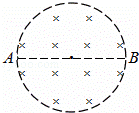 半径为R的圆形区域内有磁感应强度大小为B、方向垂直纸面向里的匀强磁场,A、B是磁场边界上的两点,AB是圆的直径,在A点有一粒子源,可以在纸面里沿各个方向向磁场里发射质量为m、电量为q、速度大小为v=