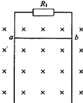如图所示,两根足够长的光滑金属导轨竖直放置,相距L=0.2m,导轨上端连接着电阻R1=1Ω,质量m=0.01kg、电阻为R2=0.2Ω的金属杆ab与导轨垂直并接触良好,导轨电阻不计.整个装置处于与导轨平面垂直的磁感应强度为B=1T的匀强磁场中.ab杆由静止释放,经过一段时间后达到最大速率,取g=10m/s2,求此时:(1)杆的速率;