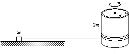 如图所示,质量为m的小物块放在长直水平面上,用水平细线紧绕在半径为R、质量为2m的薄壁圆筒上.t=0时刻,圆筒在电动机带动下由静止开始绕竖直中心轴转动,转动中角速度满足ω=β1t(β1为已知常数),物块和地面之间动摩擦因数为μ.求: