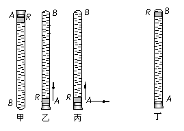 Èçͼ¼×Ëùʾ£¬ÔÚ³¤Ô¼1mµÄÒ»¶Ë·â±ÕµÄ²£Á§¹ÜÖÐ×¢ÂúÇåË®£¬Ë®ÖзÅÒ»¸öÔ²ÖùÐεĺìÀ¯¿éR£¨Ô²ÖùÌåµÄÖ±¾¶ÂÔСÓÚ²£Á§¹ÜµÄÄÚ¾¶£¬ÇáÖØÊÊÒË£¬Ê¹ËüÄÜÔÚ²£Á§¹ÜÄÚµÄË®ÖÐÔÈËÙÉÏÉý£©£¬½«²£Á§¹ÜµÄ¿ª¿Ú¶ËÓýºÈûÈû½ô¡£½«´Ë²£Á§¹ÜѸËÙÊúÖ±µ¹Öã¨ÈçͼÒÒËùʾ£©£¬ºìÀ¯¿éR¾ÍÑØ²£Á§¹ÜÓɹܿÚAÔÈËÙÉÏÉýµ½¹Üµ×B¡£ÈôÔÚ½«²£Á§¹ÜÊúÖ±µ¹ÖᢺìÀ¯¿é¸Õ´ÓA¶Ë¿ªÊ¼ÔÈËÙÉÏÉýµÄͬʱ£¬½«²£Á§¹ÜÓɾ²Ö¹¿ªÊ¼Ë®Æ½ÏòÓÒÔȼÓËÙÒÆ¶¯£¨Èçͼ±ûËùʾ£©£¬Ö±ÖÁºìÀ¯¿éÉÏÉýµ½¹Üµ×BµÄλÖã¨Èçͼ¶¡Ëùʾ£©¡£ºìÀ¯¿éÓë²£Á§¹Ü¼äµÄĦ²ÁºÜС£¬¿ÉÒÔºöÂÔ²»¼Æ£¬ÔÚÕâÒ»¹ý³ÌÖÐÏà¶ÔÓÚµØÃæ¶øÑÔ( )