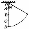Ò»¸ù³¤ÎªlµÄϸÉþ£¬Ò»¶ËϵһСÇò£¬ÁíÒ»¶ËÐü¹ÒÓÚOµã£®½«Ð¡ÇòÀÆðʹϸÉþÓëÊúÖ±·½Ïò³É600½Ç£¬ÈçͼËùʾ£¬ÔÚOµãÕýÏ·½ÓÐA¡¢B¡¢CÈýµã£¬²¢ÇÒÓÐ