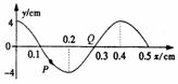 如右图所示为xy平面内沿x轴传播的简谐横波在t=0时刻的波形图像,波速为1cm/s,此时P点沿-y轴方向运动,关于图上x=0.3cm处的Q点的说法正确的是( )