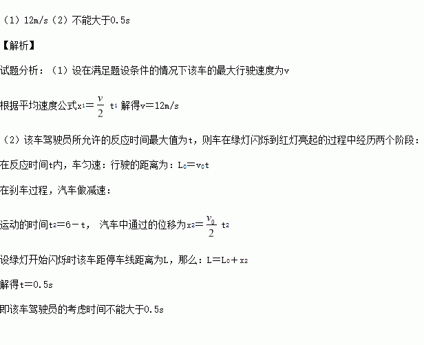 的速度驶向路口,此时车距停车线的距离为L=48.75m,当驾驶员看到绿灯开始闪烁时,经短暂考虑后开始刹车,该车在红灯刚亮时恰停在停车线以内,求该车驾驶员所允许的考虑实际