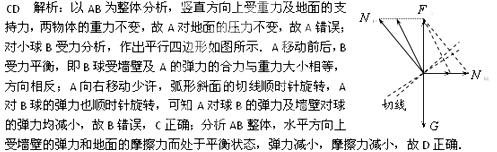 如图所示,在粗糙水平地面上放着一个截面为四分之一圆弧的柱状物体A,A的左端紧靠竖直墙,A与竖直墙之间放一光滑圆球B,整个装置处于静止状态.把A向右移动少许后,它们仍处于静止状态,则下列判断正确的是