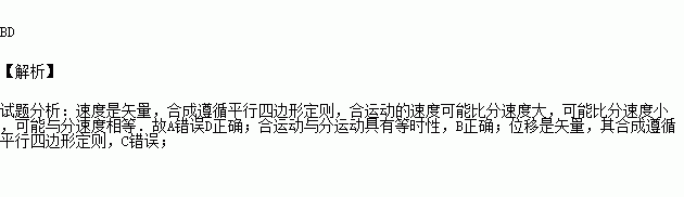 D.合运动的速度等于分运动速度的矢量和