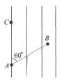 如图所示,匀强电场电场线与AC平行,AB与AC成60°角,把10-8C的负电荷从A移到B,电场力做了6×10-8J的功A、B间距离为6cm,则场强方向为______。如B处电势为1V,则A处电势为_____V,电子在A点的电势能为________。